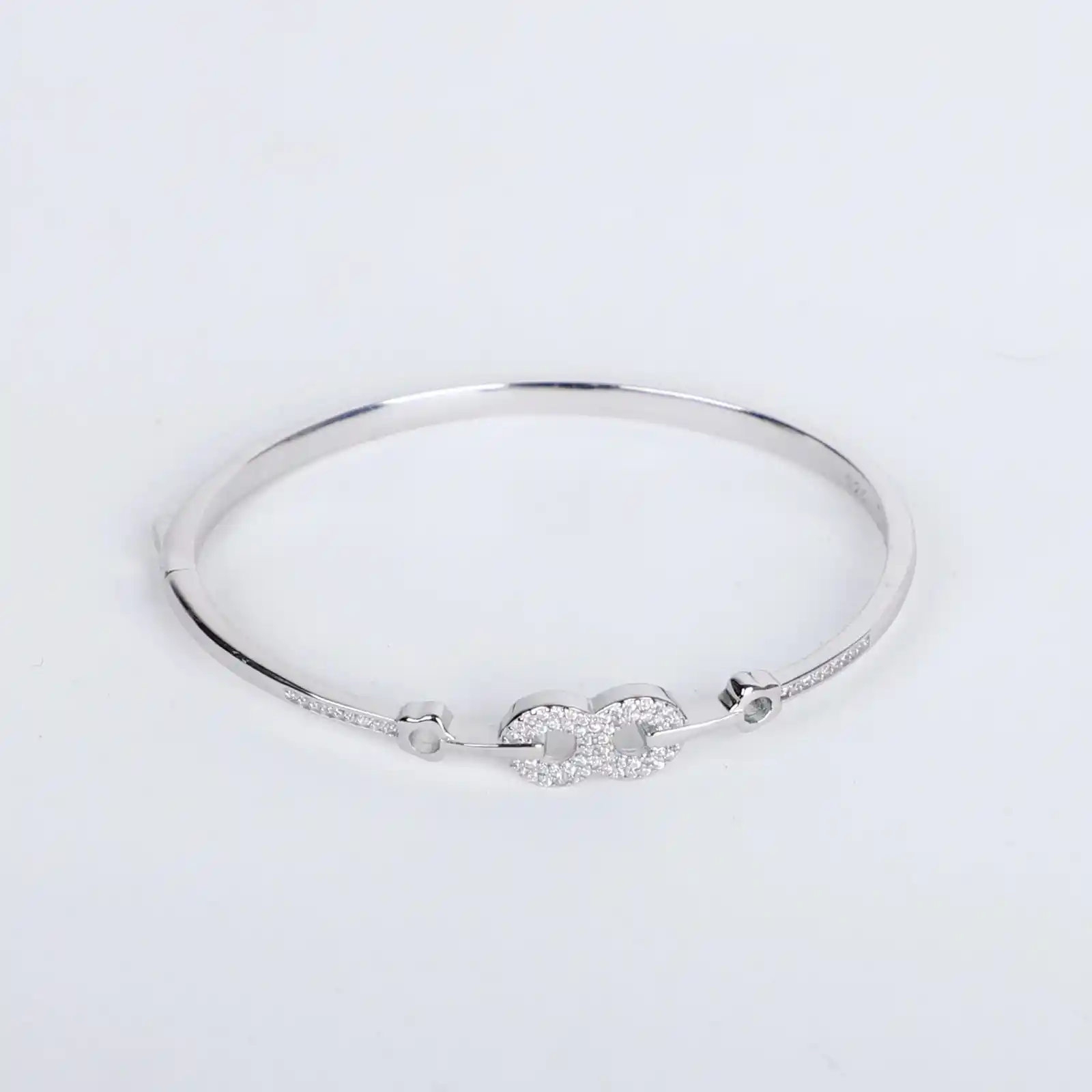 Celebrate endless elegance with this silver kadha bracelet, featuring a sleek infinity design adorned with radiant stone studs. Symbolizing timeless beauty and infinite grace, it’s a perfect blend of modern charm and classic craftsmanship.