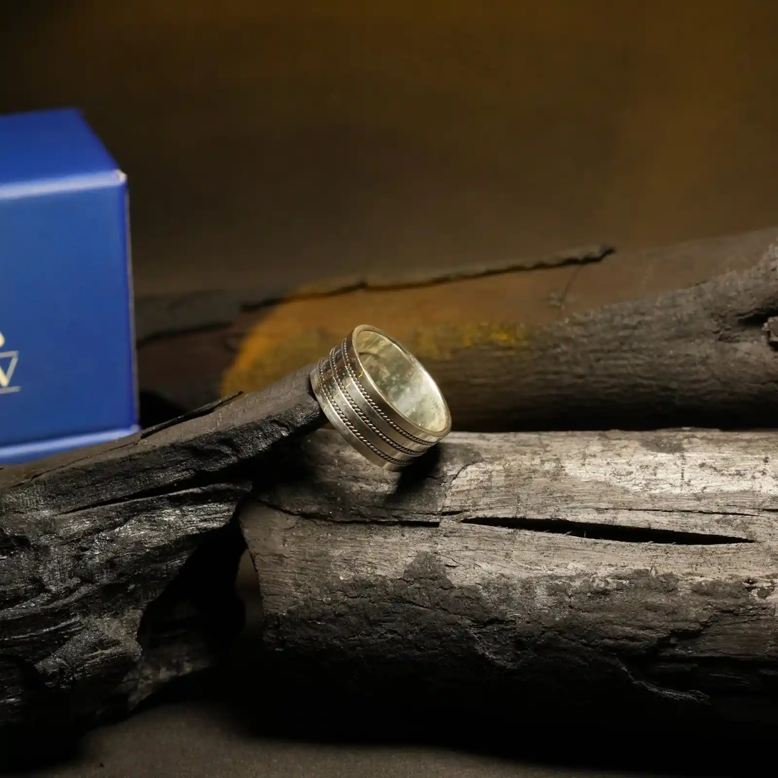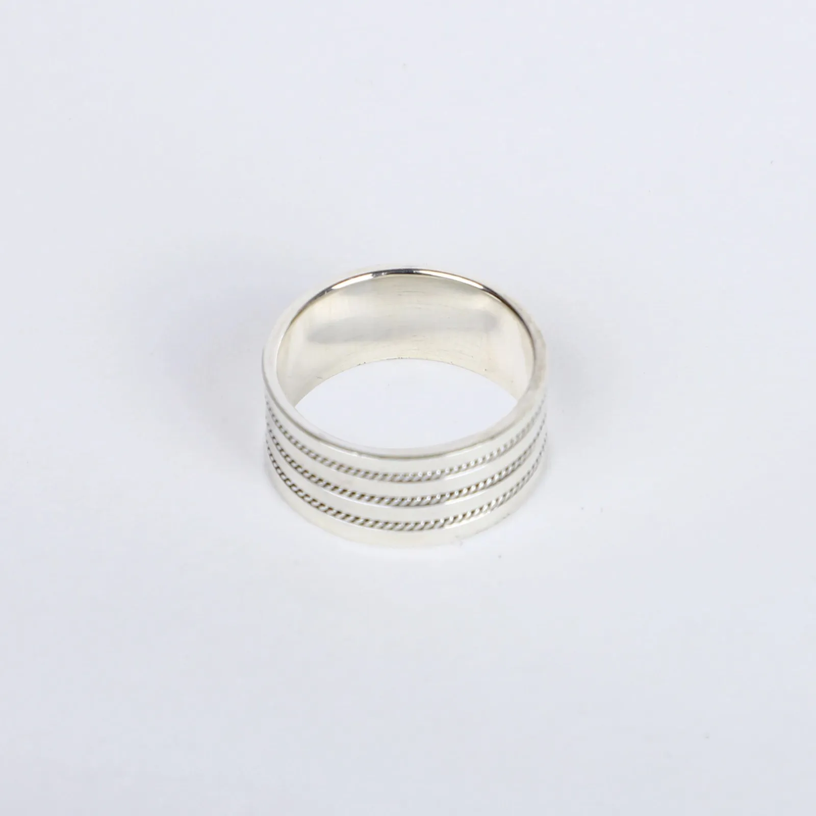 Elevate your style with this striking Men’s Sterling Silver Band Ring, featuring a bold, wide design with intricate textured lines. Crafted with high-quality sterling silver, the ring boasts a sleek polished finish accented by detailed grooves and rope-style engravings, adding depth and character. Perfect for daily wear or special occasions, this ring blends classic masculinity with contemporary elegance.