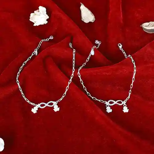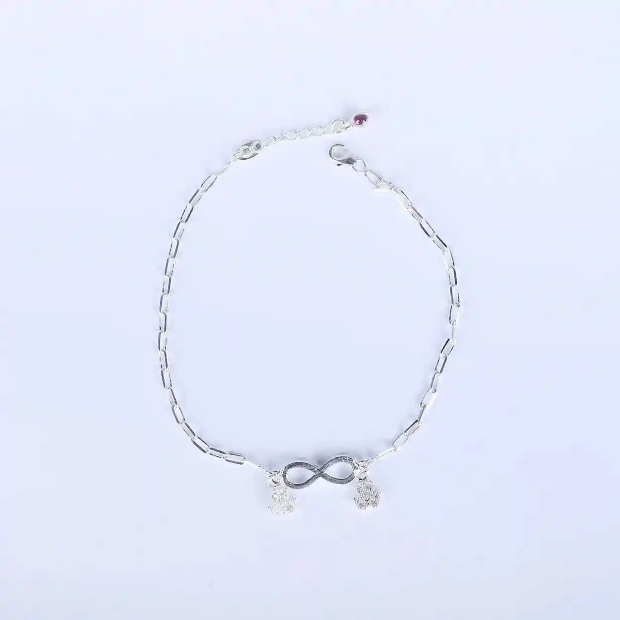 Adorned with shimmering stones, this 925 silver anklet features a radiant infinity symbol — capturing everlasting style with a touch of sparkle.