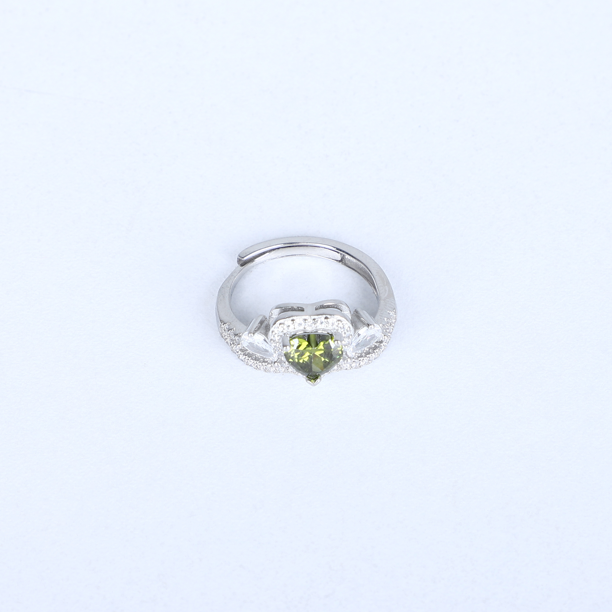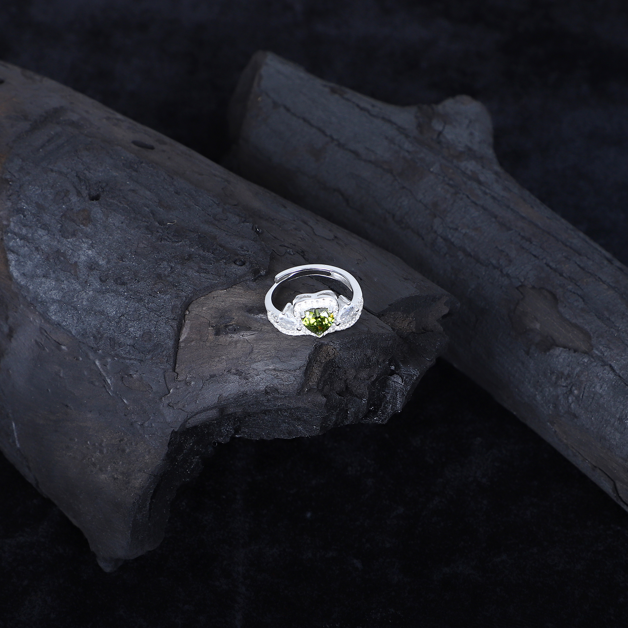 Celebrate love and individuality with this Women’s Heart-Shaped Green Gemstone Ring, featuring a striking heart-cut green center stone embraced by a halo of shimmering clear cubic zirconia. The elegant twisted band design is encrusted with additional pavé stones, creating a captivating brilliance from every angle. Crafted in polished silver, this romantic statement ring is perfect for engagements, anniversaries, or meaningful gifts.