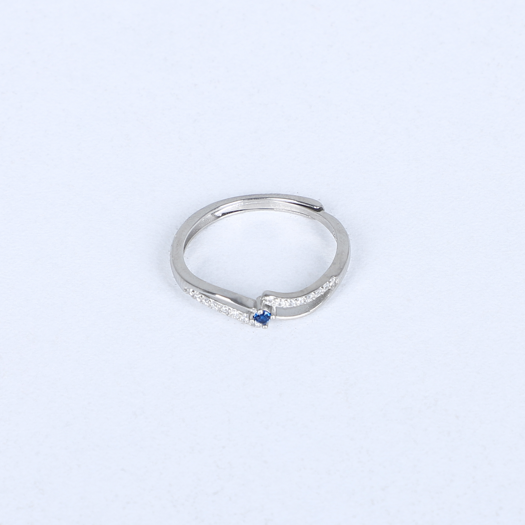 Women's Silver Wave Ring with Blue Sapphire Accent – Elegant & Minimalist Design